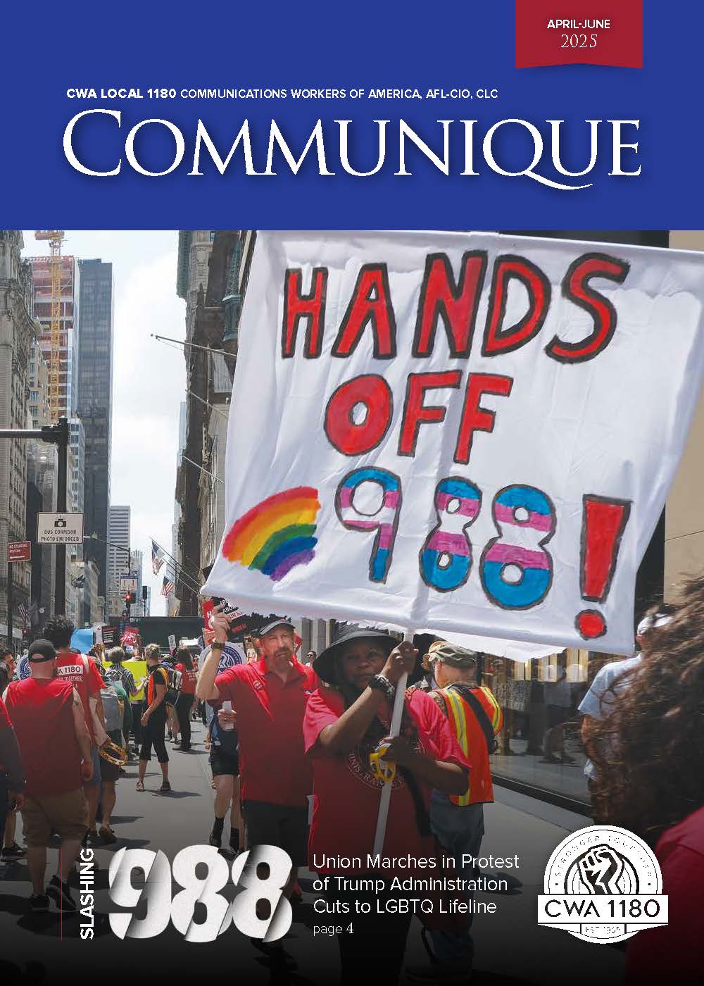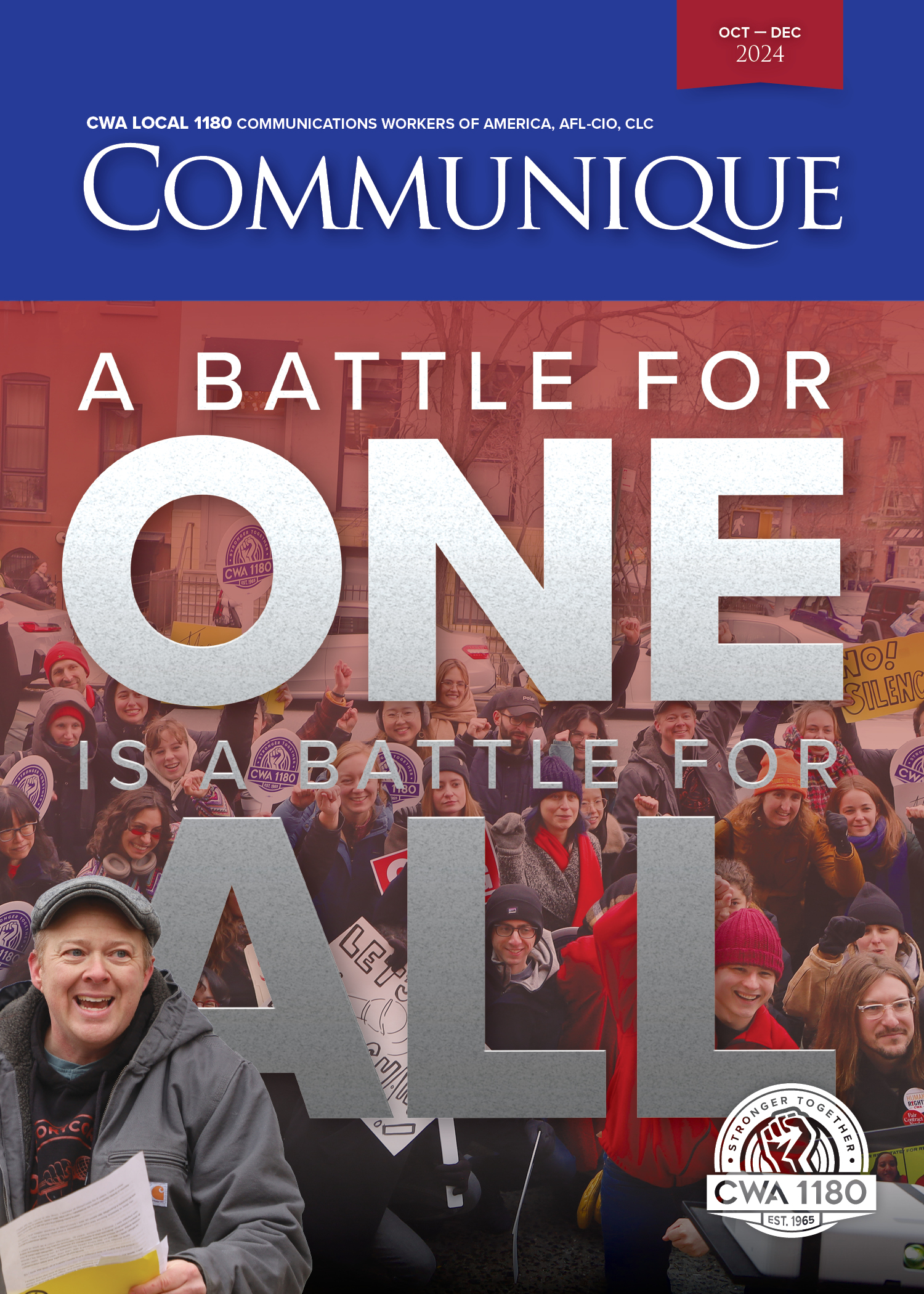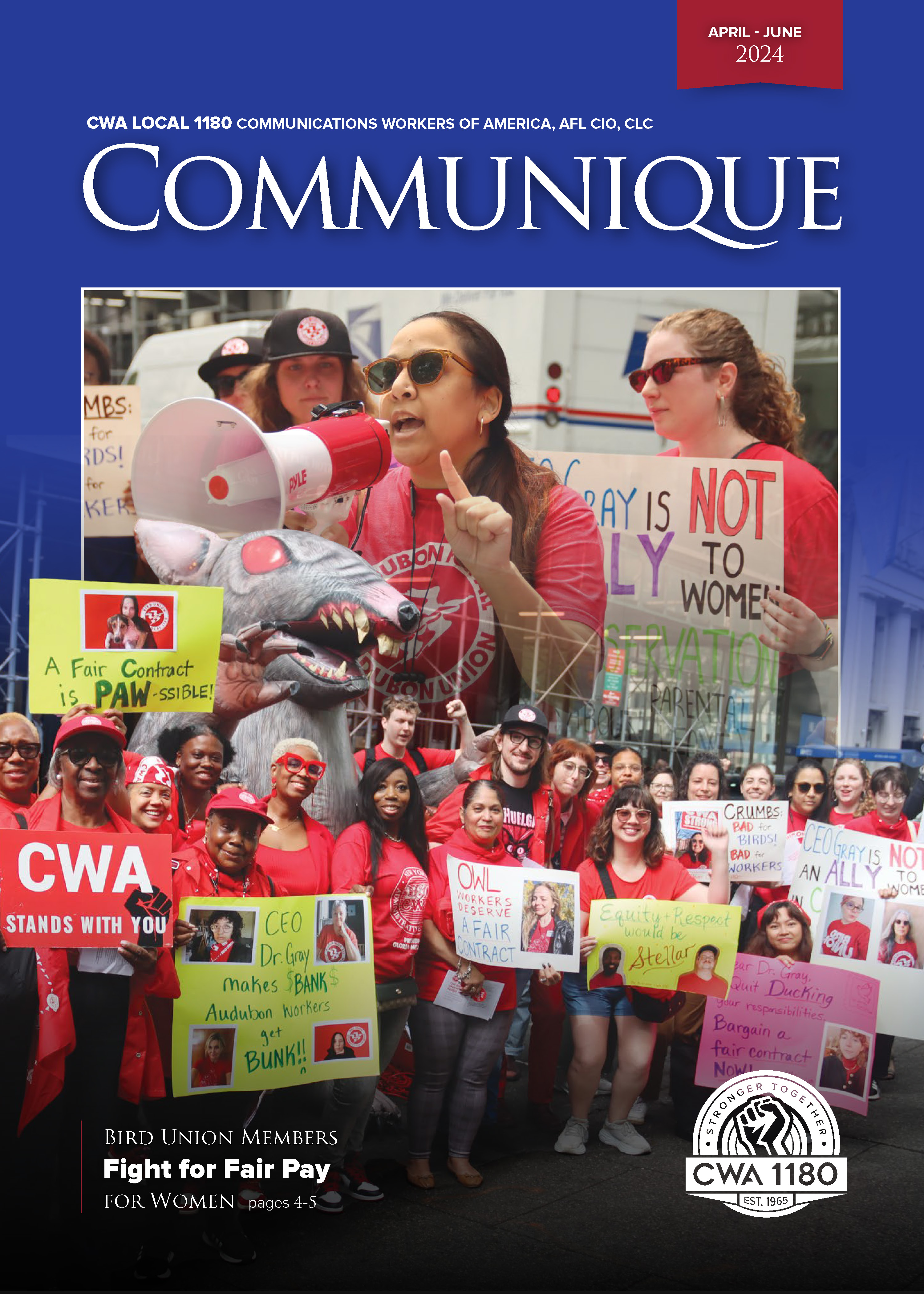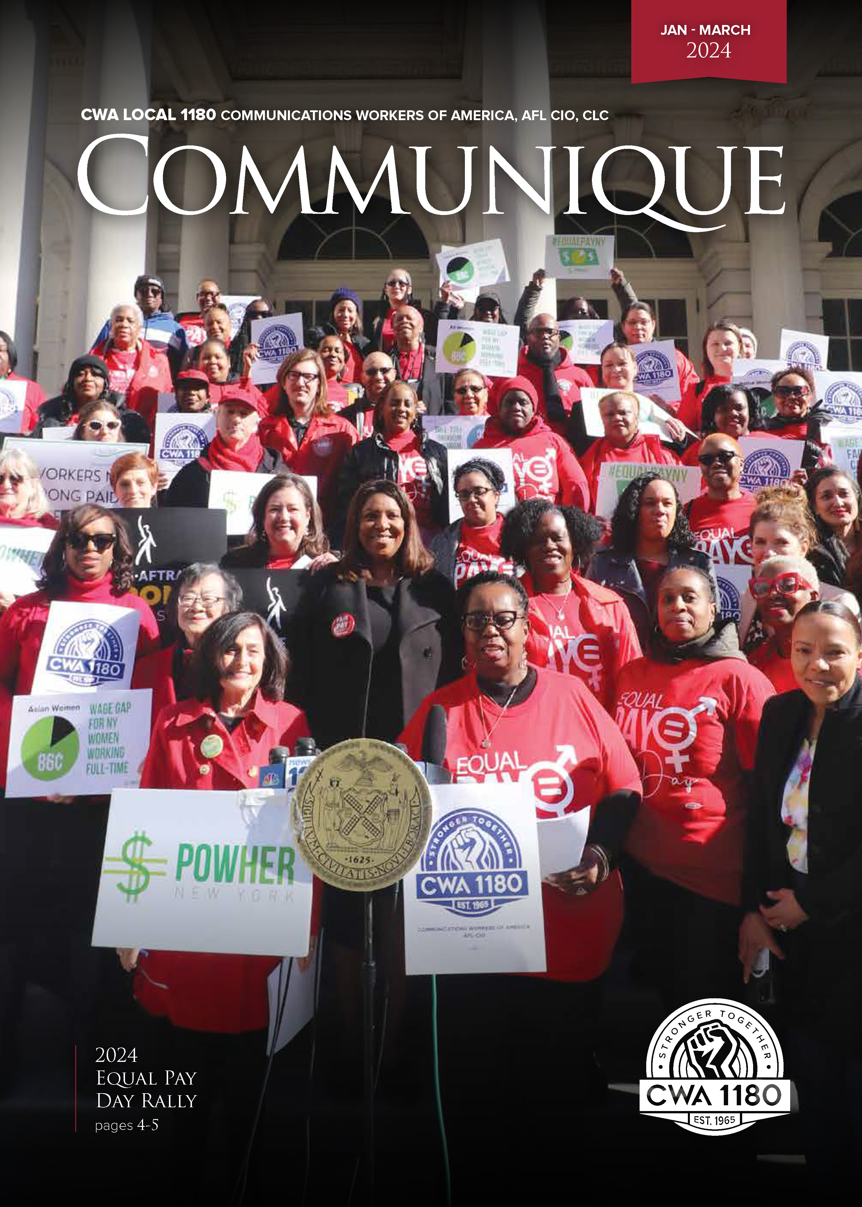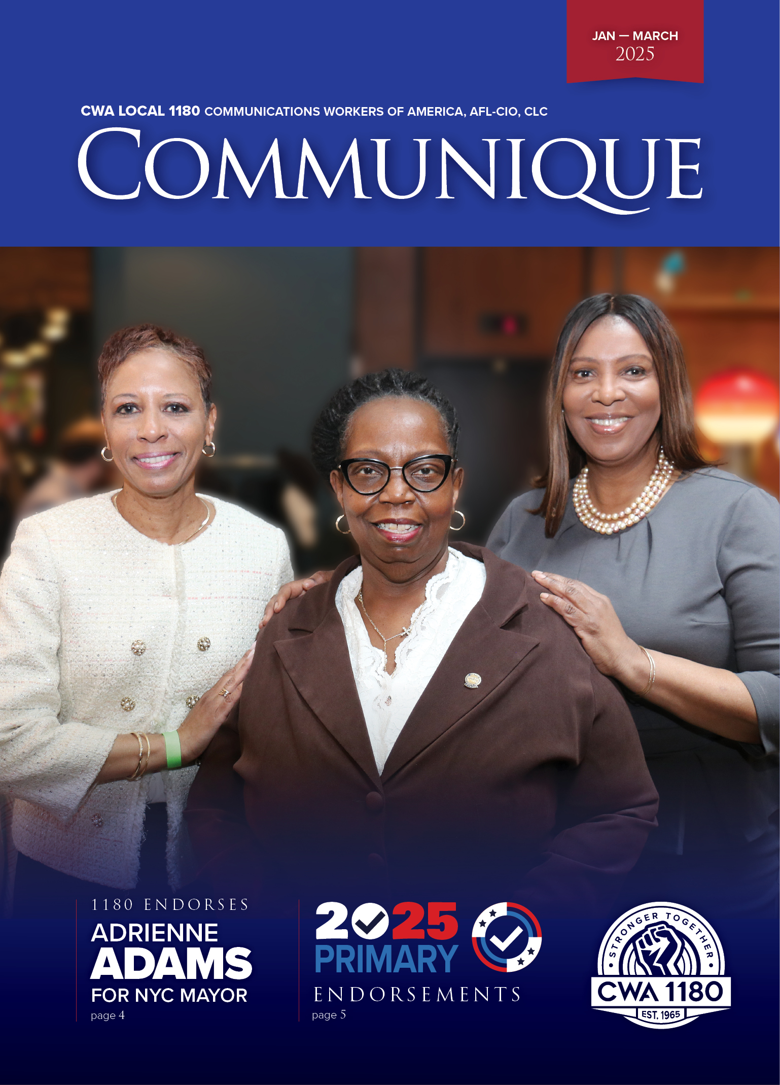 CWA Local 1180’s quarterly magazine, the Communique, has consistently garnered top awards in the Metro New York Labor Communications Council and the International Labor Communications Association contests. Competing against some of the country's best labor publications, the Communique repeatedly stands out in categories for both writing and graphic design, while Local 1180's outreach campaigns and social media programs take the highest of honors.